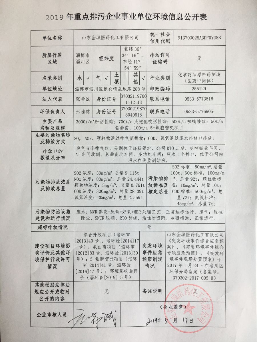 2019年重點排污企業事業單位環境信息公開表
