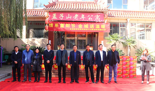 農歷九月初九是重陽節,尊老、敬老、愛老,是中華民族的傳統美德。10月23日上午,“情系重陽節·金城獻愛心”——金城醫藥黨委走進孟子山老年公寓捐贈活動在西河鎮上臺村的孟子山老年公寓舉行。在活動現場,整齊擺放著由金城集團為老人們捐贈的6臺“松下”牌全自動滾筒洗衣機和60箱蘋果。