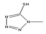 所在位置:首頁 - 產品介紹化學名稱:甲巰四氮唑; 1-甲基-5-巰基四氮唑; MMTZ; 1-甲基-5-巰基-1,2,3,4-四氮唑; 1-甲基四氮唑-5-硫醇; 5-巰基-1-甲基四氮唑; 1-甲基-1H-四氮唑-5-硫醇; 1-甲基-5-巰基-1H-四氮唑; 5-巰基-1-甲基四唑; 5-巰基-1-甲基四唑/甲硫四唑; 甲基巰基四氮唑