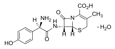 化學名稱:(6R,7R)-3-甲基-7-[(R)-2-氨基-2-(4-羥基苯基)乙酰氨基]-8-氧代-5-硫雜-1-氮雜雙環(huán)[4.2.0]辛-2-烯-2-甲酸一水合物。
