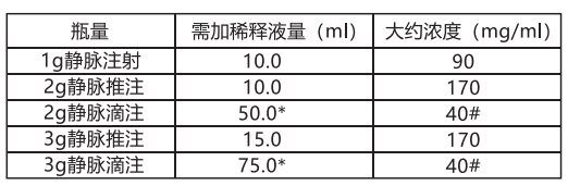 250mg肌肉或靜脈注射,500mg肌肉或靜脈注射,1g肌肉或靜脈注射,2g或3g靜脈推注:
